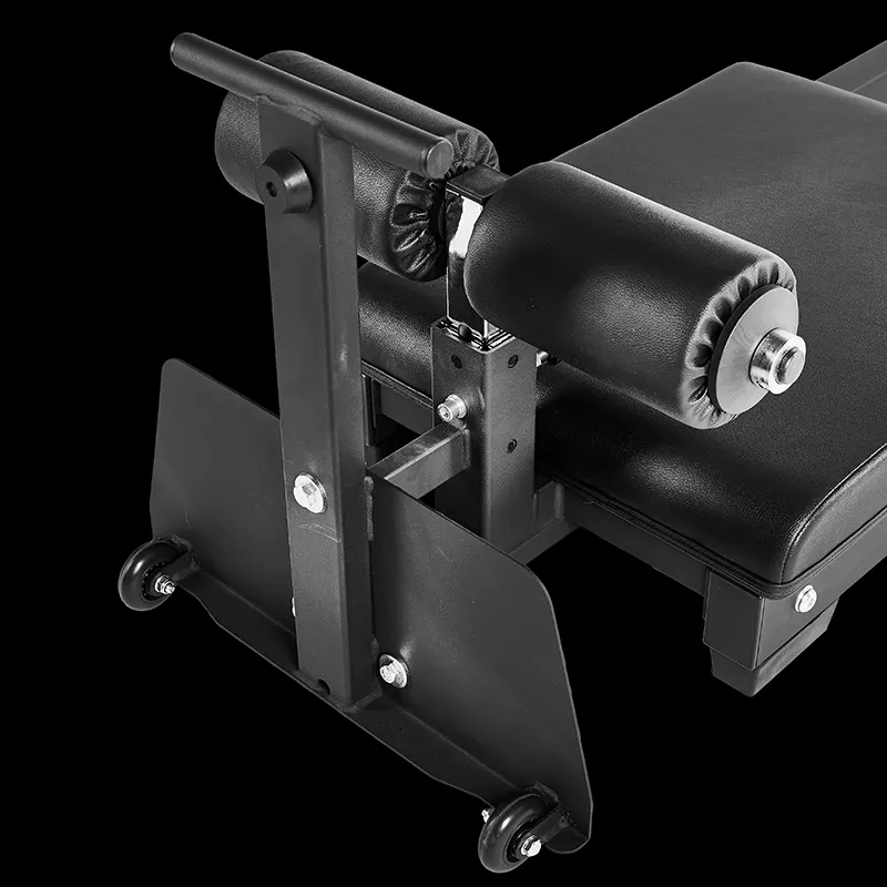 Finally there are wheels at the base of the plate. Plus a rubber stopper at the back of the T-bracket. So when you finish your last set you can use your Nordic Curl Bench as a walking frame. With rubber on all the contact points it won’t wreck your floors.