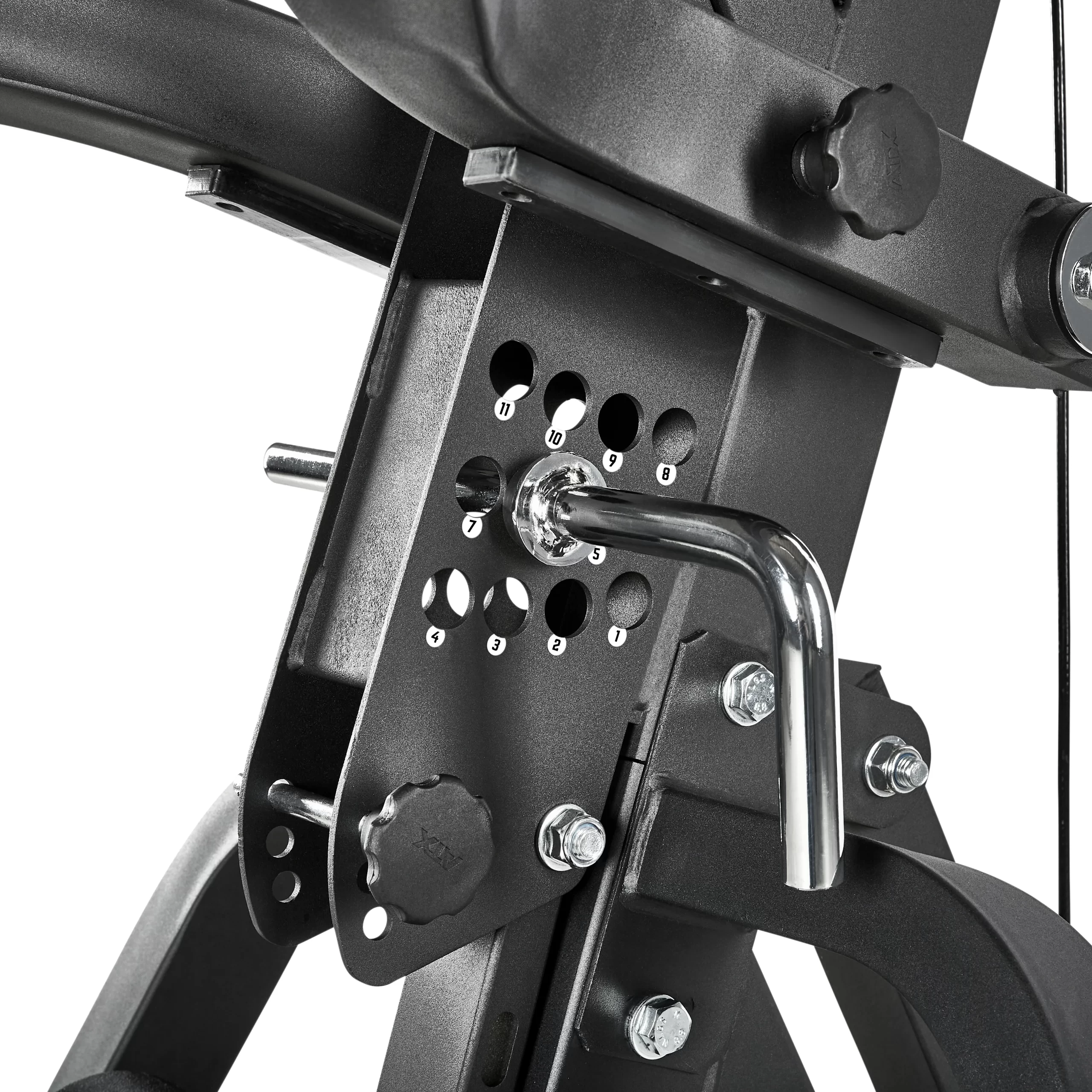 The ATX Triplex Multi-Gym (ATX-WSX-670) is your German-engineered all-in-one solution, packing a 250kg leverage bench press, 160kg plate-loaded lat pulldown/low row, and a detachable FID bench into a compact 132cm x 122cm footprint. Smash chest presses, lat pulldowns, rows, squats, curls, and more with iso-lateral lever arms pivoting on industrial bearings for a silky-smooth, gym-quality feel.